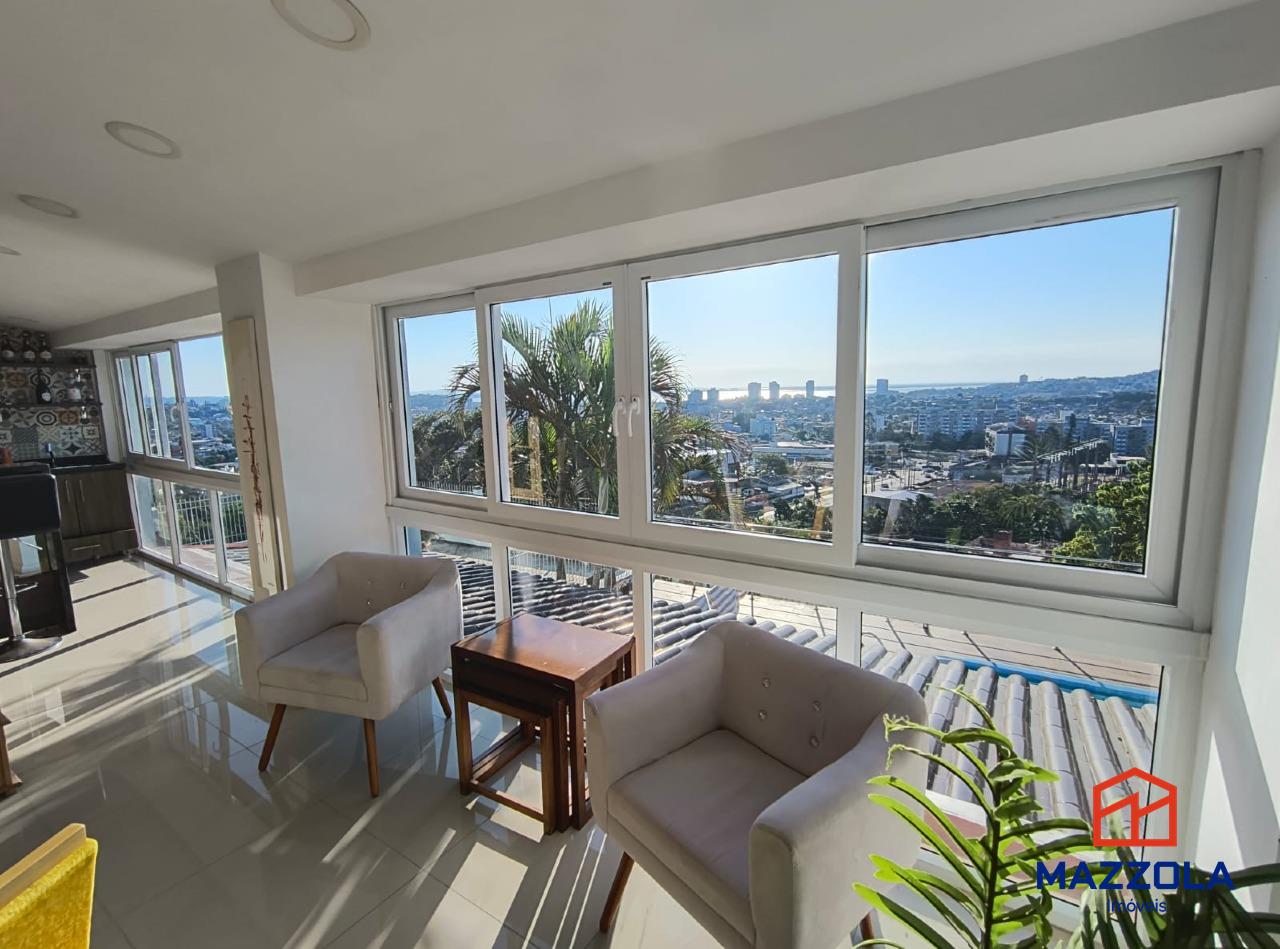 No pavimento subsolo, temos garagem para 2 veículos, amplo salão de festas montado com mais uma churrasqueira, bar e um gigantesco terraço arborizado e privativo, com piscina e vista de tirar o folego, lavanderia, e 2 banheiros.
