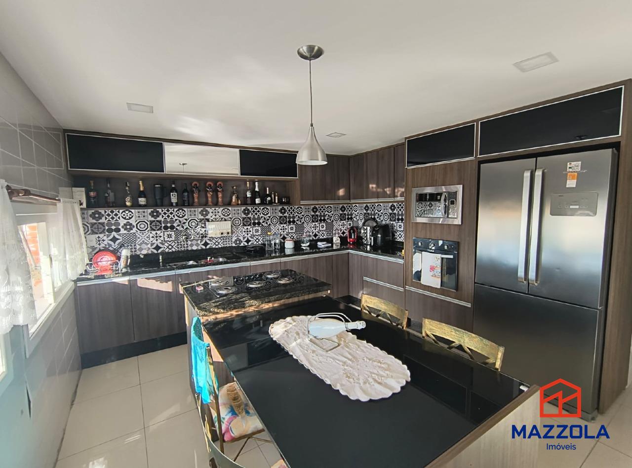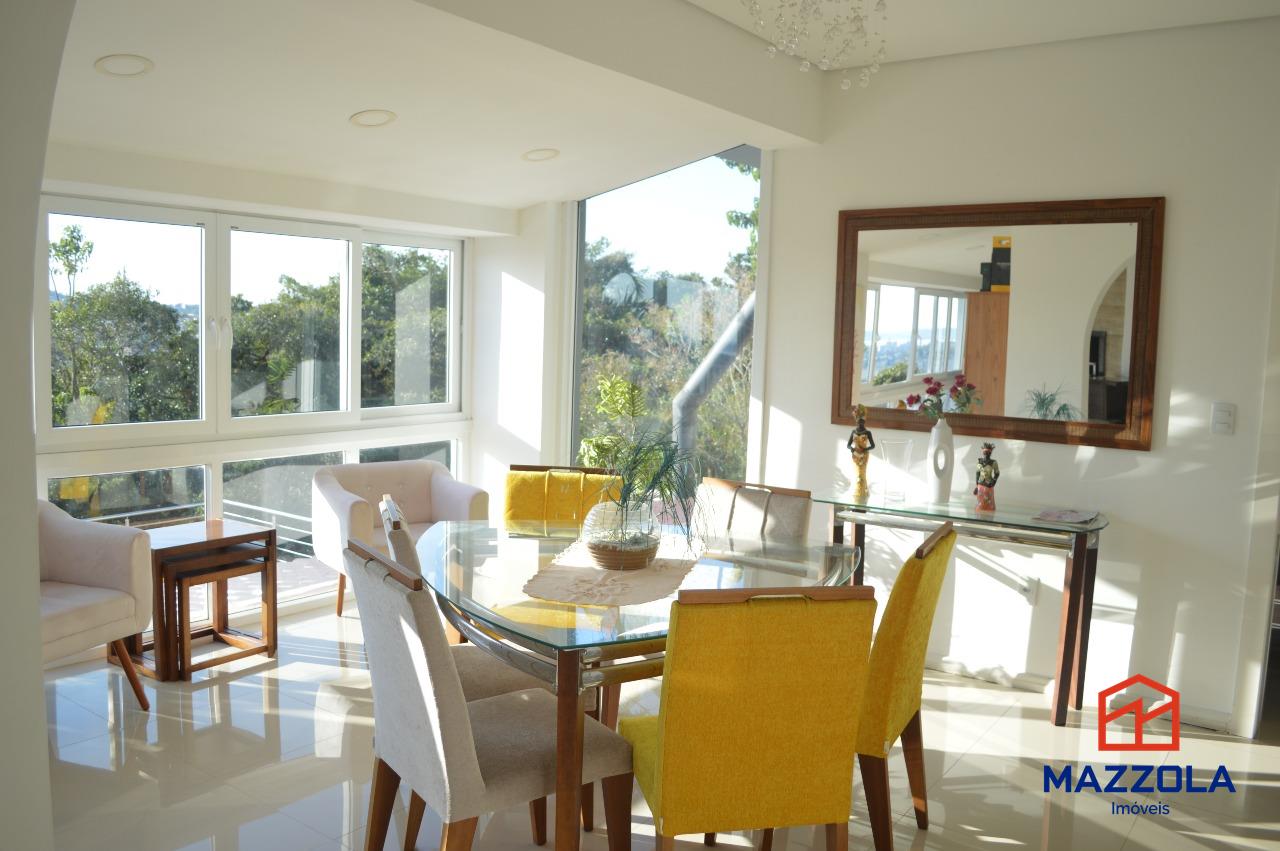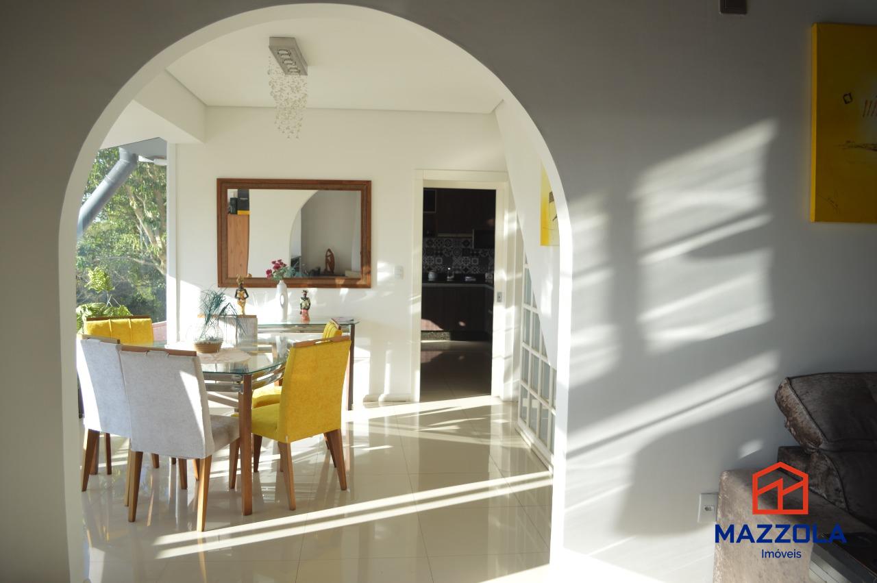 No térreo temos um belo hall de entrada, levando a um living de 3 ambientes bem definidos com piso em porcelanato, rebaixamento em gesso, cozinha planejada com muita ventilação natural, depósito, gabinete e churrasqueira.
